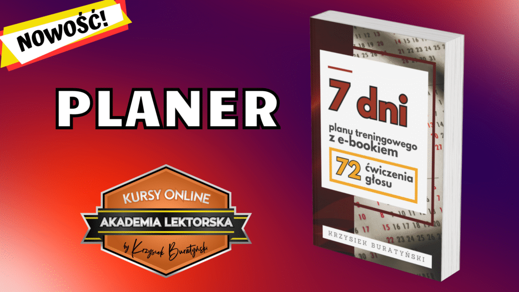 7-dniowy planer ćwiczeń – to krótka książeczka, w której ćwiczenia z podręcznika ułożyłem w przykładowy, tygodniowy harmonogram treningu. Każdego dnia znajdziesz tu gotowy trening, który zajmie Ci mniej więcej 15 minut, a rozwinie Twój głos we wszystkich obszarach – od postawy i oddechu, po fonację, artykulację i dykcję.