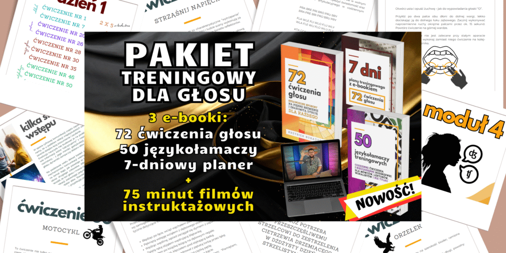Jeśli natomiast nie chcesz wchodzić w tematykę emisji głosu czy lektorstwa głębiej – stworzyłem dla Ciebie absolutnie skondensowany zestaw materiałów szkoleniowych, które poprowadzą Cię krok po kroku do lepszego, silniejszego i bardziej profesjonalnego głosu.